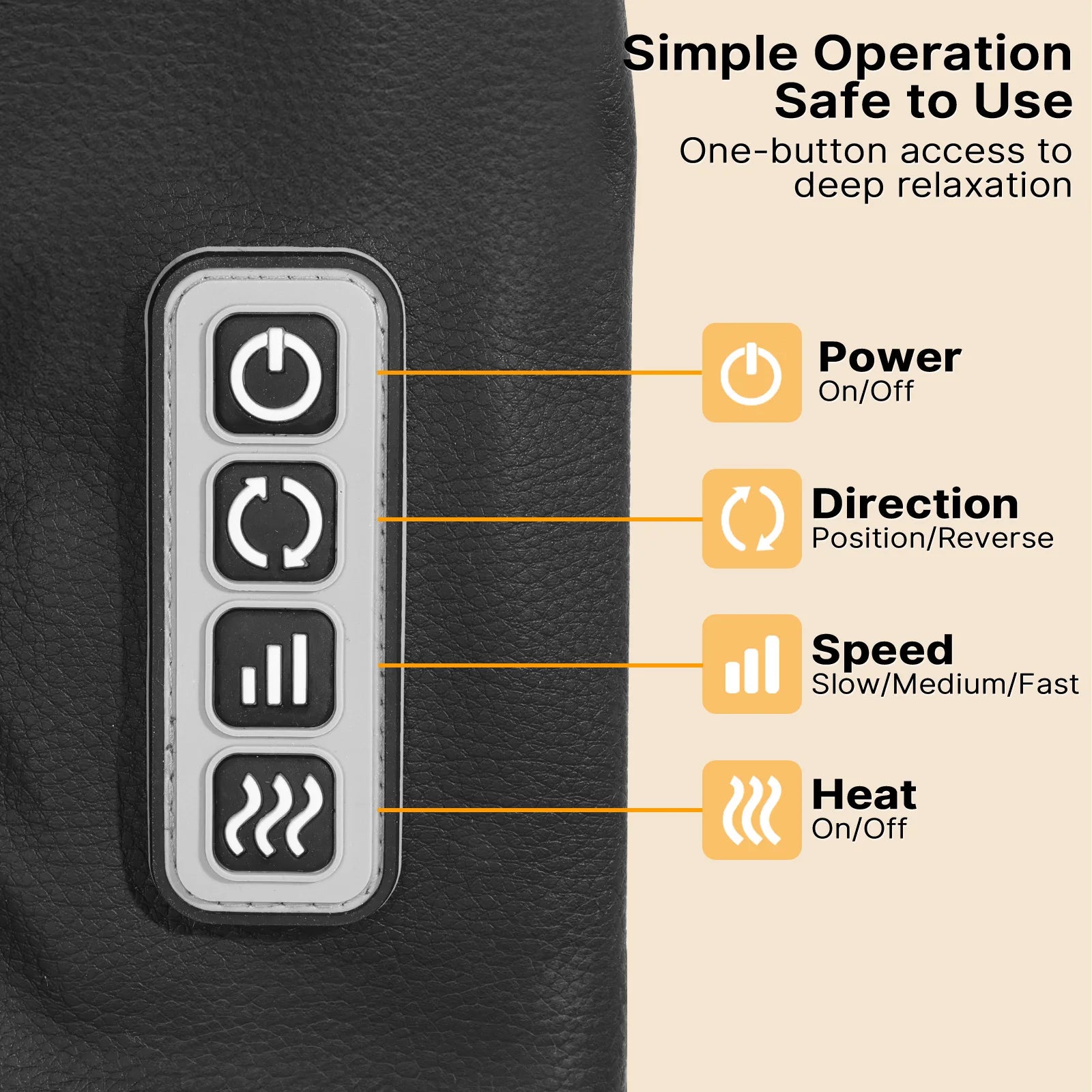 Plaats de massager rond uw nek, schakel het apparaat in en kies uw gewenste massagestand. De massager beweegt langzaam in cirkelvormige Shiatsu-techniek om spanning en stijfheid te verlichten. U kunt ook de warmtefunctie aanzetten voor een extra ontspannend effect.